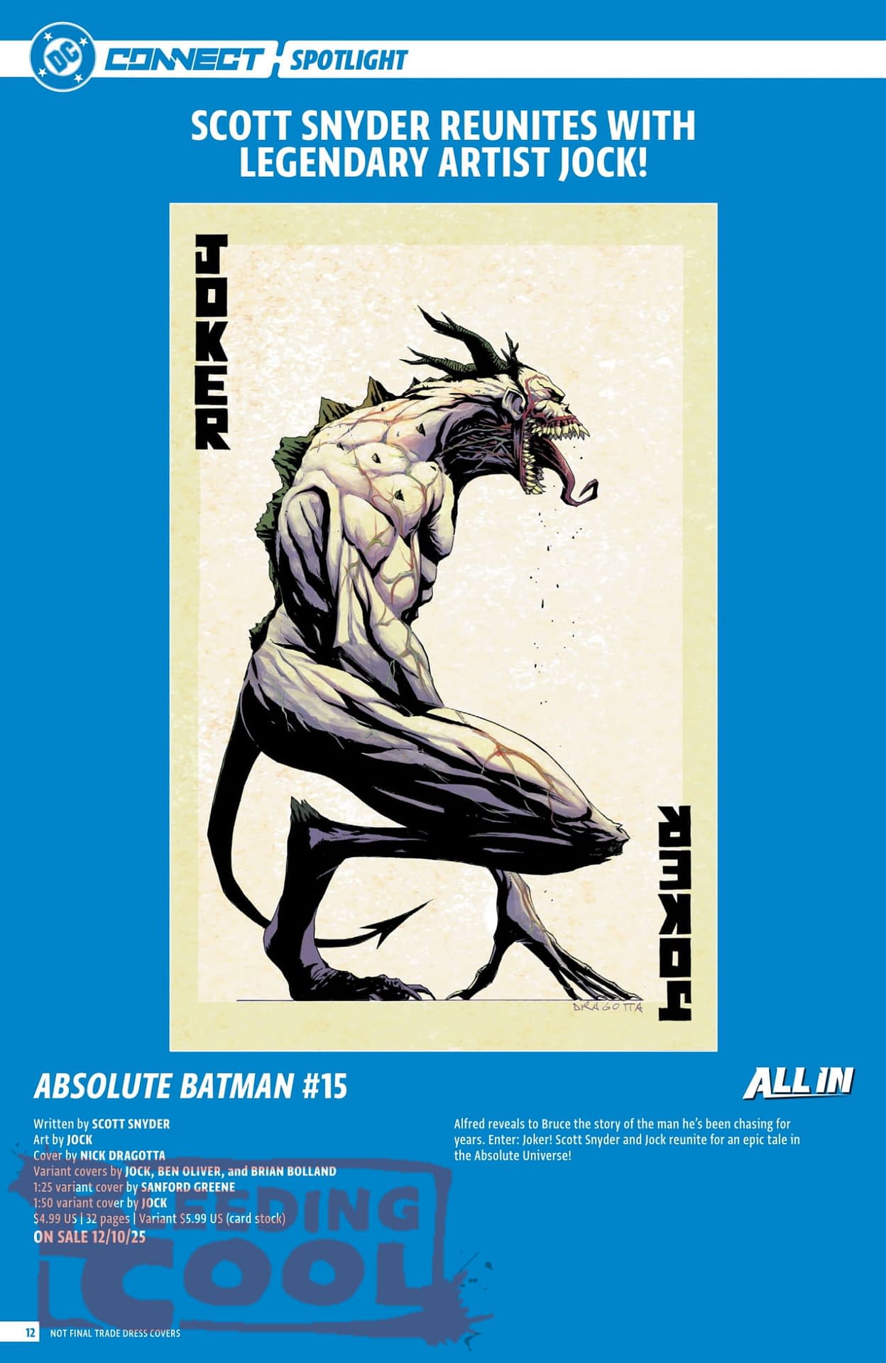 Alfred reveals to Bruce the story of the man he's been chasing for years. Enter: Joker! Scott Snyder and Jock reunite for an epic tale in the Absolute Universe!