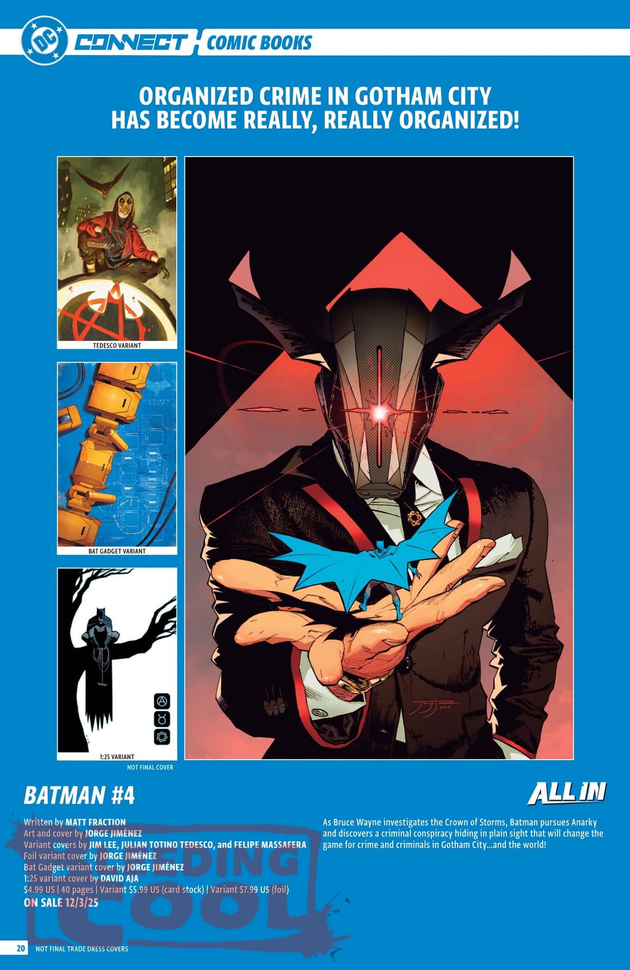 The stage is set, and Bruce Wayne's battle through a gauntlet of future Batmen is on! Each former Robin has shaped Gotham City into their own vision of justice, and if Bruce can make his way past Dick Grayson, he'll face the darkest one yet. Will he survive the most violent aspects of his own legacy? Or will Batman's greatest failure destroy him and the city he's sworn to protect? It's a literal battle for the cowl—and for the fate of the DC Universe—as the all-star creative team of Joshua Williamson and Dan Mora turns up the heat!