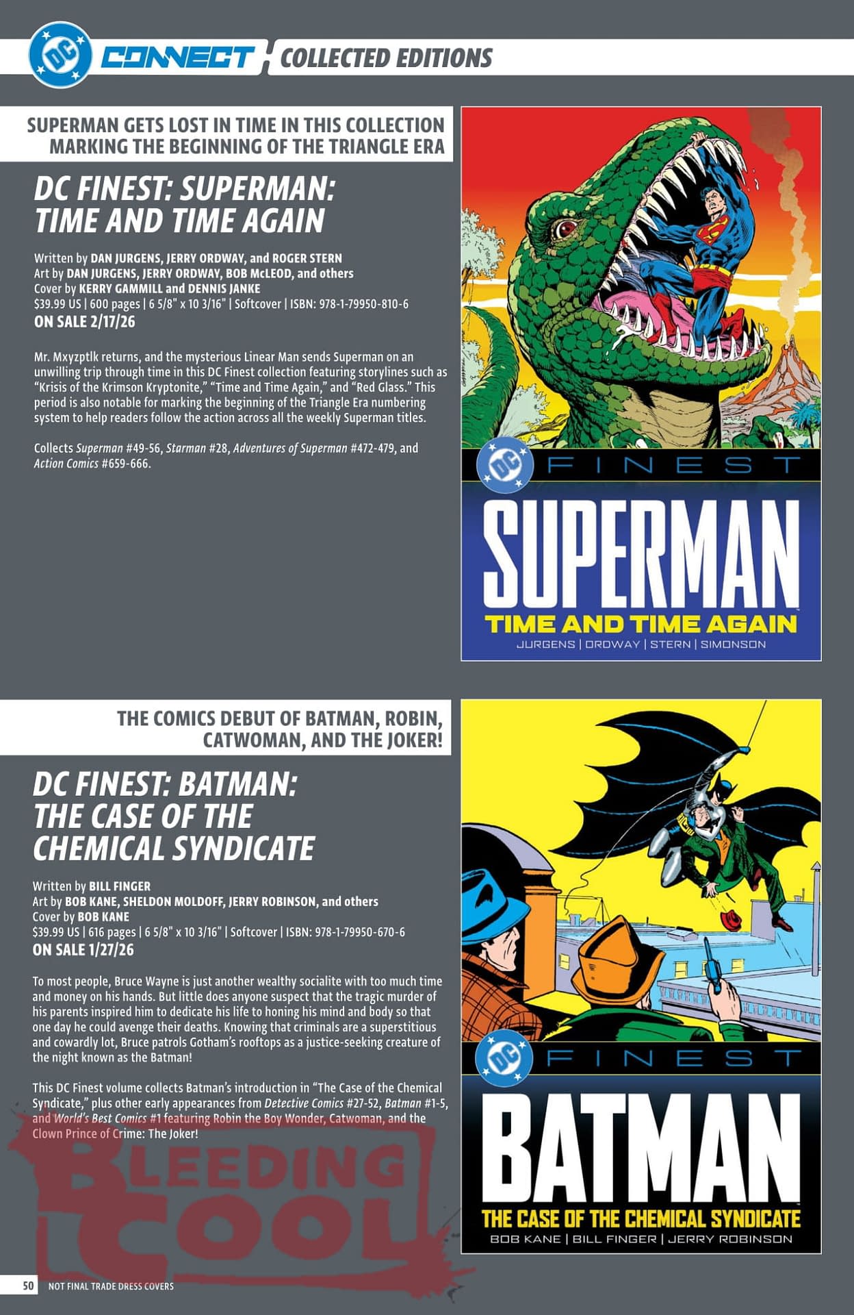 This DC Finest volume collects Batman's introduction in "The Case of the Chemical Syndicate, plus other early appearances from Batman (1940) #1-5; Detective Comics (1937) #27-52; and World's Best Comics (1941) #1 featuring Robin the Boy Wonder, Catwoman, and the Clown Prince of Crime: The Joker!